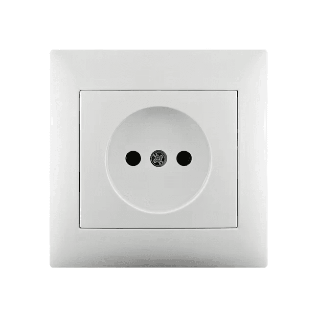 Cette prise ne dispose pas de mise à la terre. Bien que ces prises ne soient pas strictement interdites à la vente, leur installation dans les logements neufs n'est plus autorisée depuis 1991.